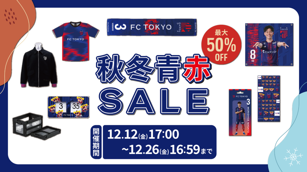 Ab Fr., 12.12., veranstalten wir den „FC Tokyo Herbst-Winter Blau-Rot SALE“ als Dankeschön an alle Fans und Unterstützer, die unsere offiziellen Fanartikel regelmäßig lieben und unterstützen!