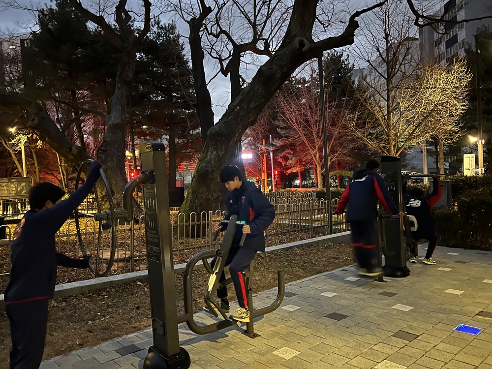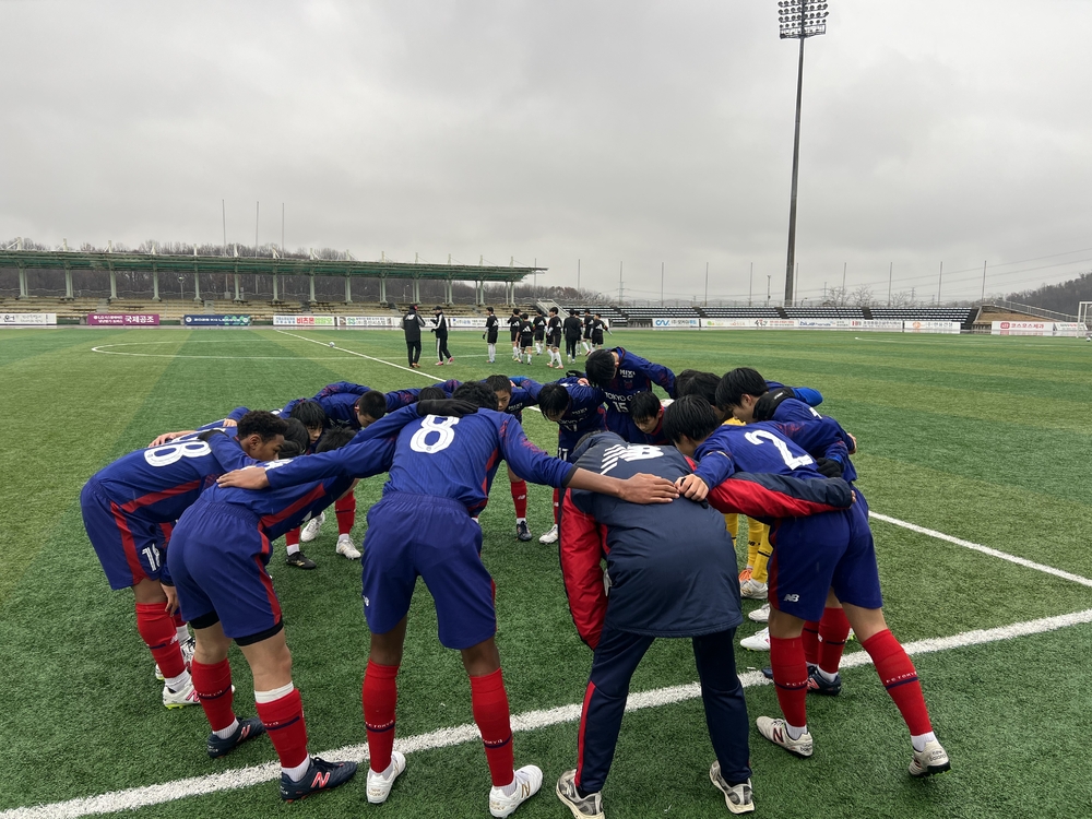 Der heutige Gegner ist die Sokgwan-Mittelschule, gegen die ab 14:00 ein Spiel mit drei 30-minütigen Abschnitten ausgetragen wird. Die Gegner sind U-15-Spieler.