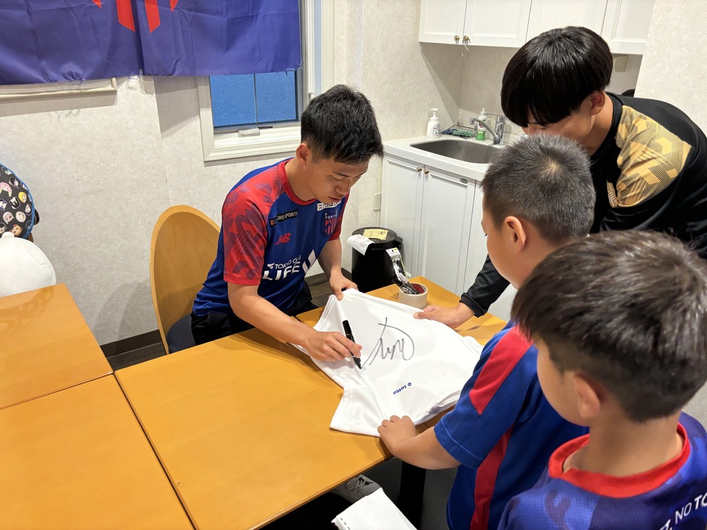 In der abschließenden Botschaft richteten sie sich an die Schüler und sagten: „Bitte unterstützt FC Tokyo, und lasst uns gemeinsam auf professioneller Bühne Fußball spielen!“