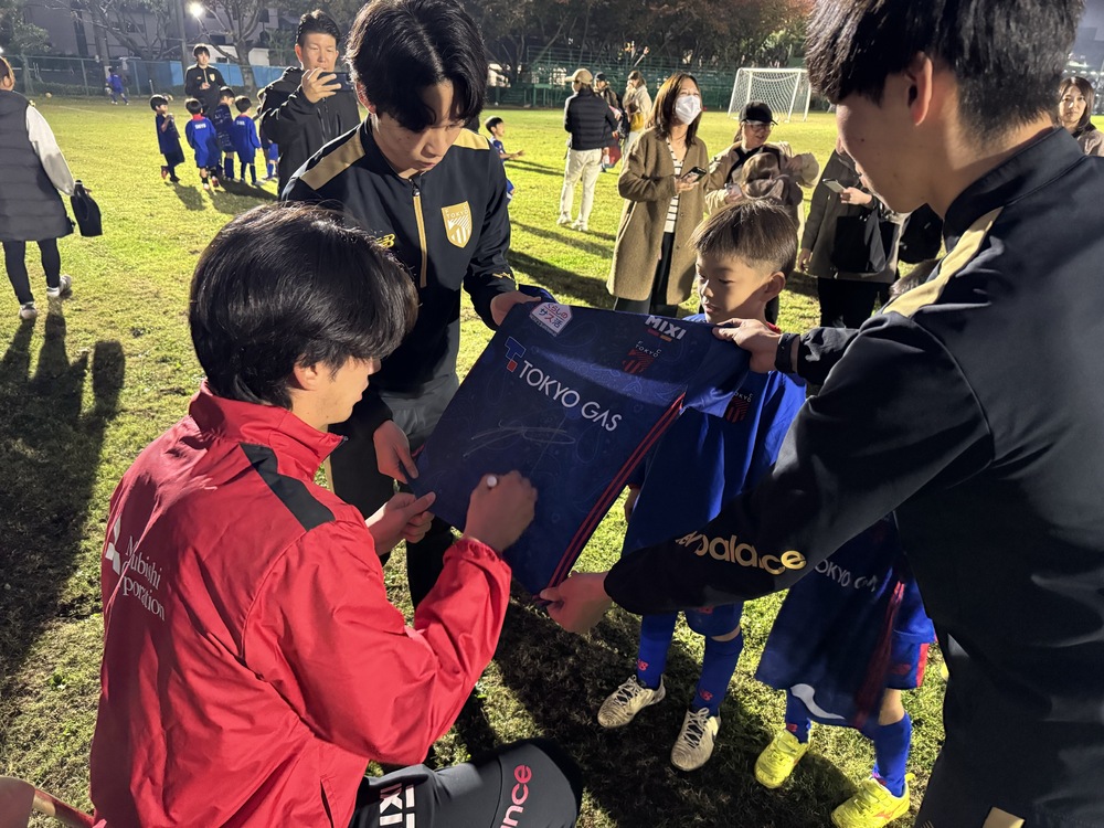 Zum Schluss richtete Masataka KOBAYASHI eine Botschaft an die Schüler: „Seid dankbar dafür, dass ihr jetzt das FC Tokyo-Emblem tragt und für die Trainingsbedingungen, und gebt beim Training euer Bestes!“
