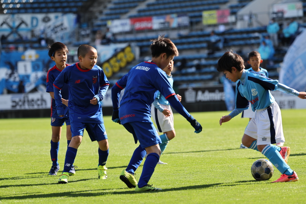 Nach der Ankunft im Stadion wurden die Kinder nach Jahrgangsstufen aufgeteilt und spielten ein Vorspiel zum Meiji Yasuda J1 League 37. Spieltag Júbilo Iwata vs FC Tokyo.