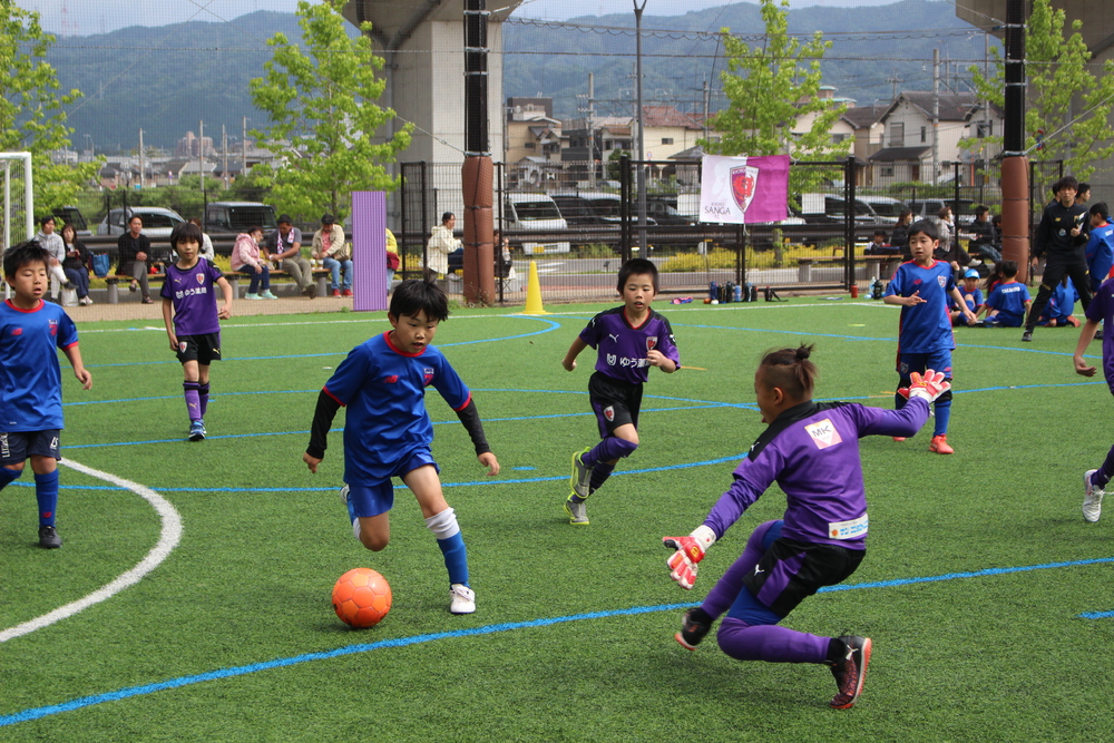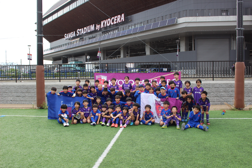 Am ersten Tag der Unterstützungstour gab es nach der Ankunft im Stadion ein Freundschaftsspiel mit den Schulkindern von Kyoto Sanga F.C.!
