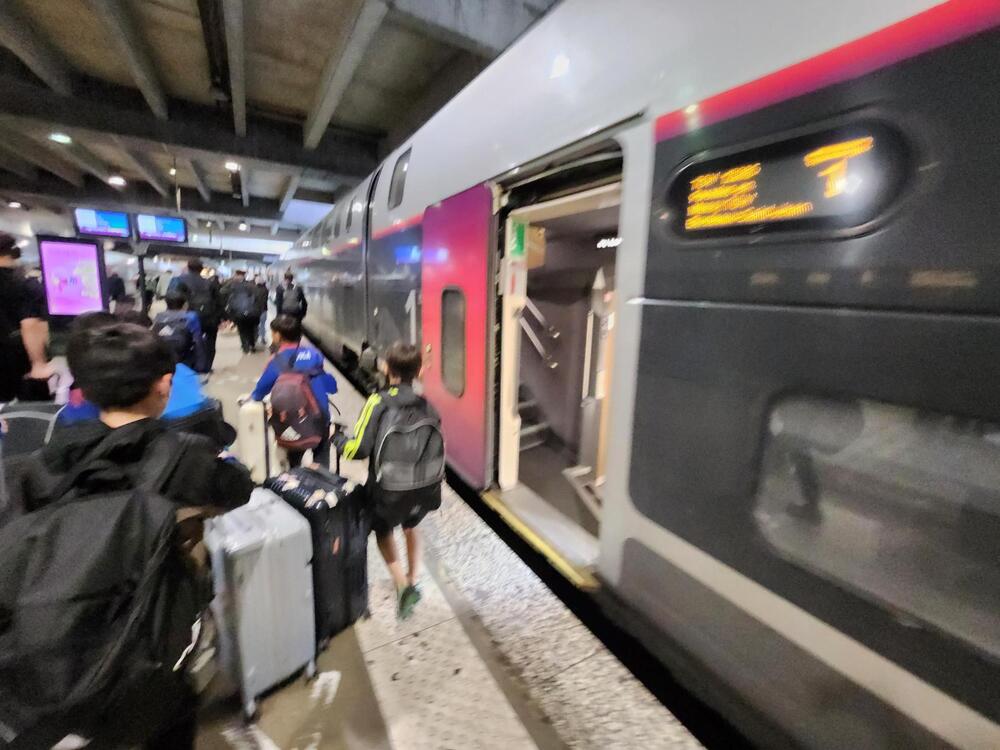Nachdem wir den Eiffelturm genossen hatten, sind wir wieder mit der Privatbahn zum Bahnhof Montparnasse gefahren und von dort mit dem französischen Hochgeschwindigkeitszug TGV zum Bahnhof Rennes angekommen.