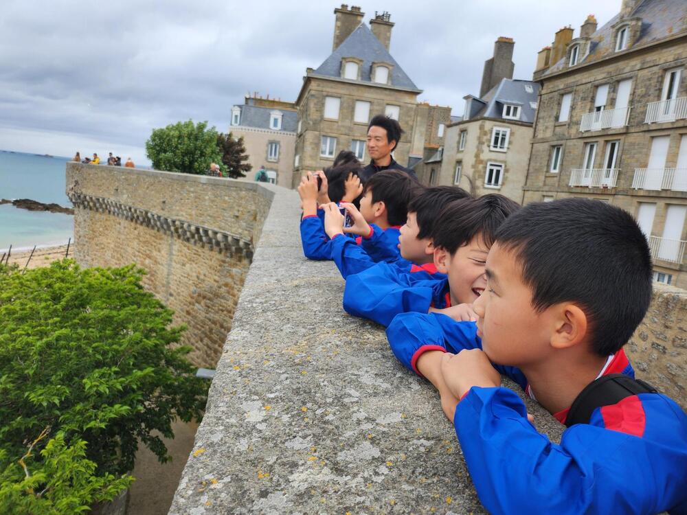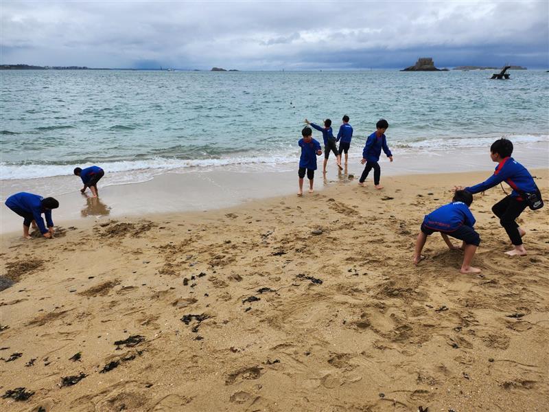 In Saint-Malo gibt es eine Küste. Zuerst genossen wir die Aussicht auf das schöne Meer von der Stadtmauer aus, danach gingen wir ans Meer, liefen ausgelassen am Sandstrand entlang und spielten, indem wir nur die Füße ins Meer tauchten!