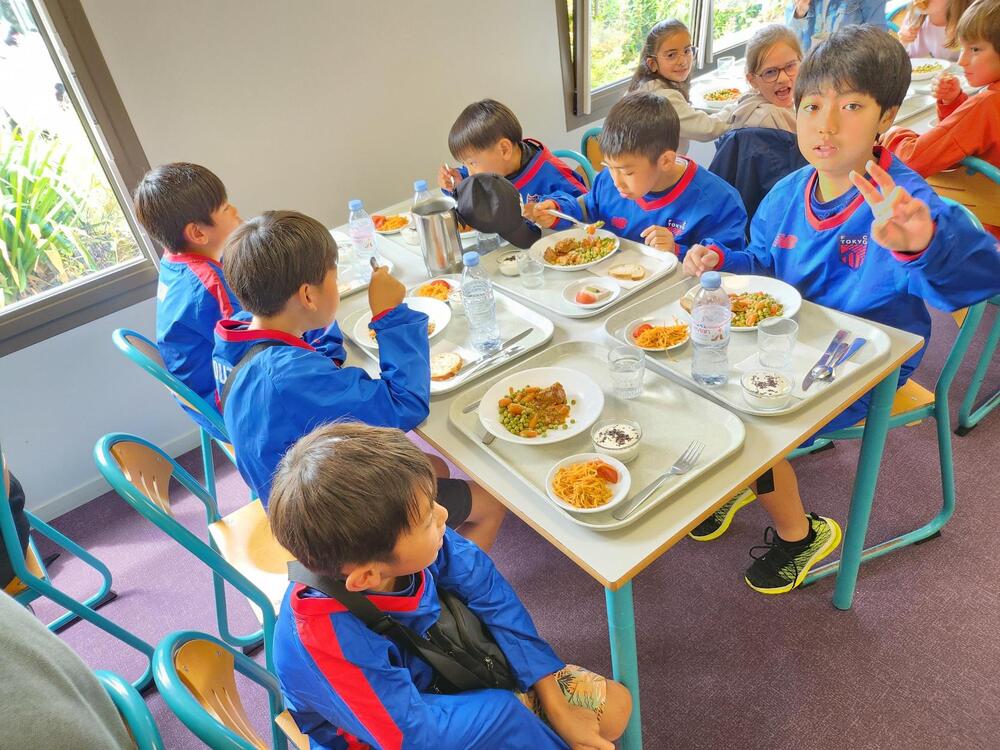 Es war das erste Mal seit unserer Ankunft in Frankreich, dass wir Reis gegessen haben, und da wir uns beim Training viel bewegt hatten, hat es uns besonders gut geschmeckt.