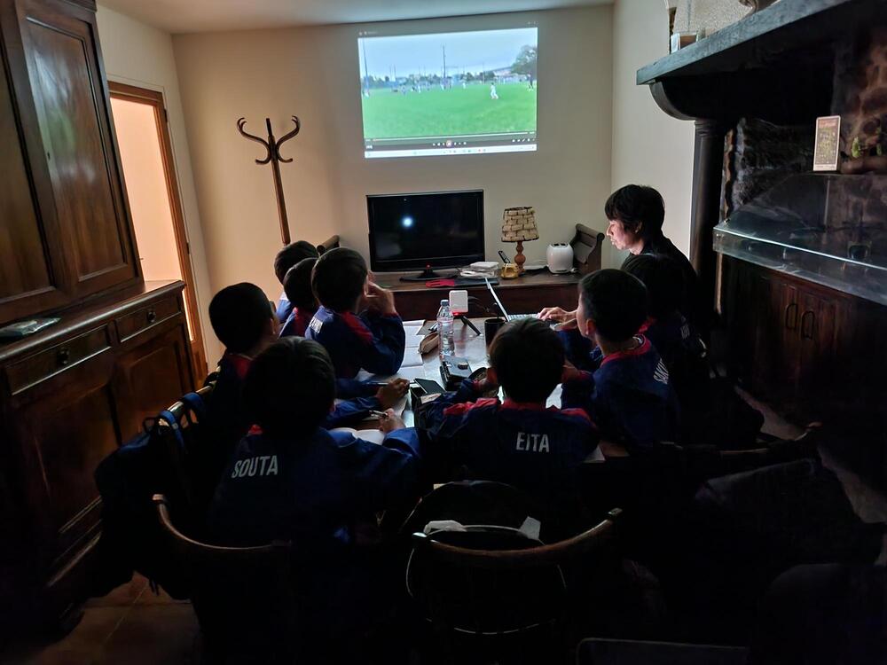 Nach dem Mittagessen kehrten wir einmal zur Unterkunft zurück und bereiteten uns auf das ab morgen beginnende Turnier vor, indem wir zunächst gemeinsam im Team die Aufnahmen des Trainingsspiels aus Japan ansahen und unsere Spielweise abstimmten.