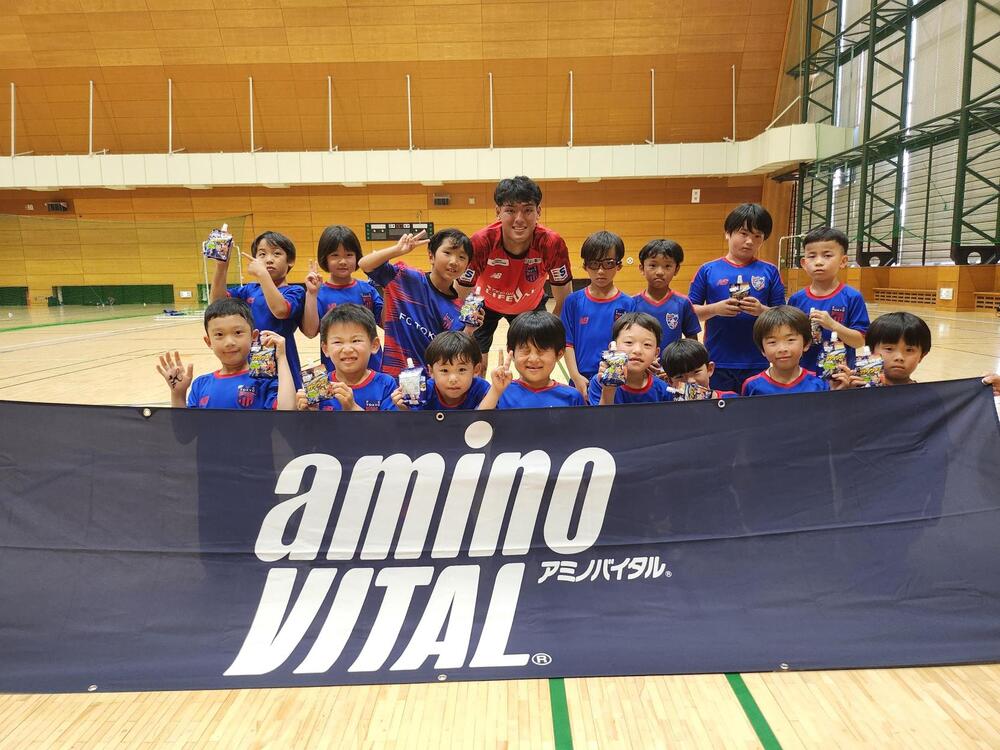 Zum Abschluss sagte er zu den Kindern: „Habt Spaß am Fußball und findet Freunde!“ und gab jedem ein Autogramm sowie das von AJINOMOTO CO., INC. bereitgestellte Amino Vital Drink-Gel Guts Gear♪