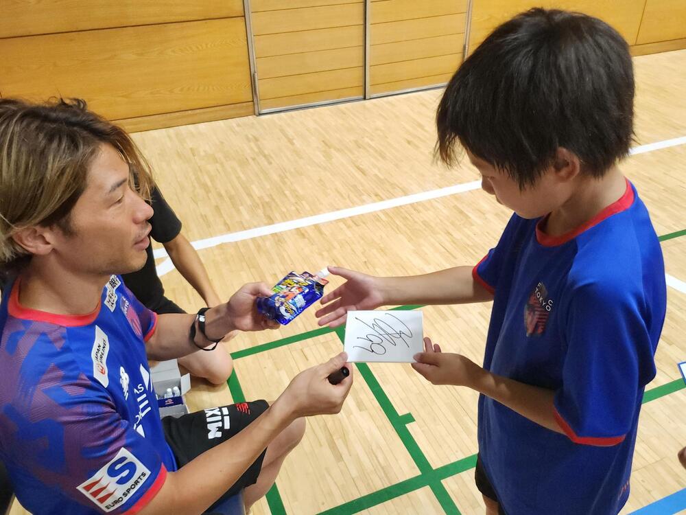 Kosuke SHIRAI gab auch Autogramme und Guts Gear weiter und sagte zum Abschluss zu den Kindern: „Die Zeit ist begrenzt, also genießt den Moment in vollen Zügen und gebt im Fußball euer Bestes!“