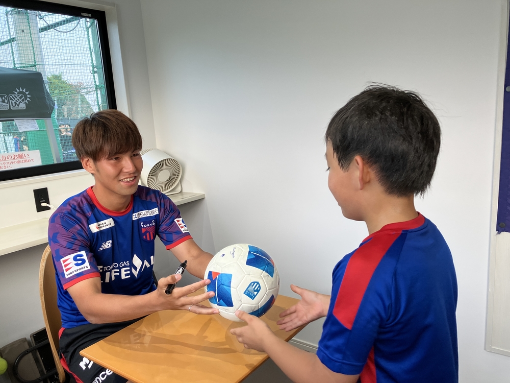 Auf die Frage der Schüler „Gibt es einen Spieler, den Sie als Vorbild nehmen?“ antwortete er mit „Kento HASHIMOTO“, und auf die Frage „Gibt es einen Spieler, der euch helfen würde, wenn er dabei wäre?“ antwortete er mit „Marcelo RYAN“ und beantwortete außerdem viele weitere Fragen!
