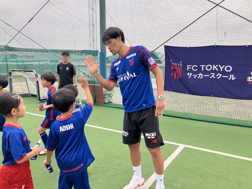 Anfangs waren die Schüler der Schule noch etwas nervös, aber als Spieler Higashi die Schüler fragte: „Möchtet ihr Fußballspieler werden?“, lockerte sich die Anspannung allmählich.