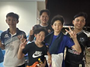 Da wir extra auf Auslandsreise sind, haben wir Souvenirs aus Tokio mitgebracht, und jeder Spieler hat die Gelegenheit genutzt, mit den Menschen in Thailand in Kontakt zu treten und ihnen Geschenke zu überreichen, um den Austausch zu fördern.