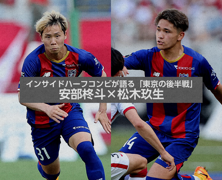Tokyo is working on building a new soccer style with the arrival of coach Albert PUIG ORTONEDA. The first season has reached its halfway point. We asked Shuto ABE and Kuryu MATSUKI, who have partnered as inside midfielders in most league matches since the opening game, to share their feelings about the battles so far and their outlook for the second half of the season towards the team's growth.