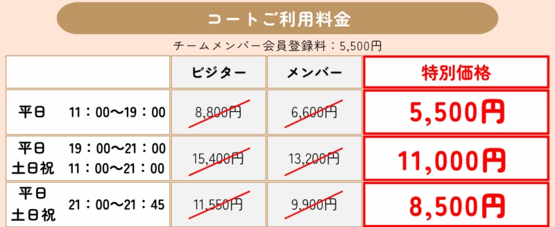 During the applicable period, you can use rental courts at an even better price than the regular member rate!