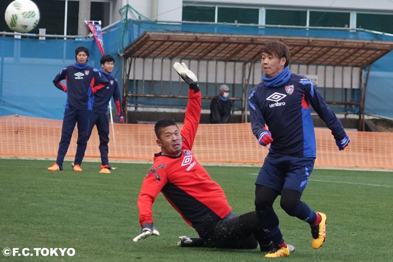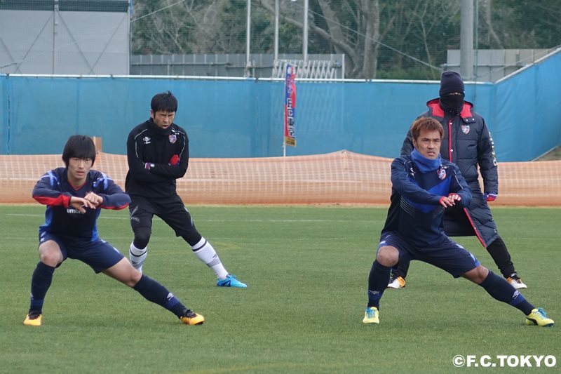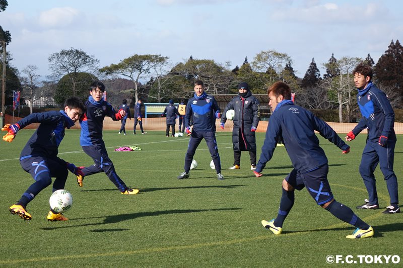 At Takashiro Sports Park, where a very cold wind blows, both in the morning and afternoon, efforts were made to improve player coordination through attacks from the side and defense within the area.