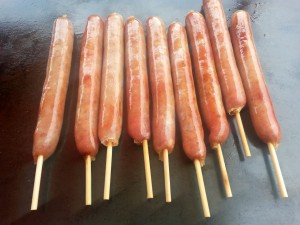(6) German Sausage with Potatoes ... 800 yen This is a soccer viewing set with German sausage and potatoes. |