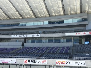 During the match, in principle, you cannot move from your seat except during halftime. Also, please refrain from standing up to cheer.