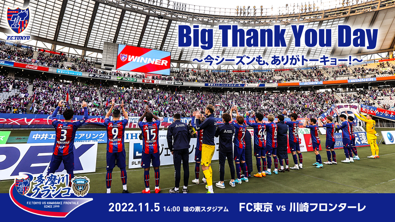 [Updated: 11/11] Notice of the 'Big Thank You Day - Thank you Tokyo for this season too!' event on 11/5 (Saturday) against Kawasaki 2022/10/13 Event