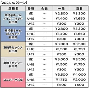 * For "Wheelchair Home Main/Back Free Seating," "Wheelchair Home Kitakami Stand Seating," "Wheelchair Mixed Free Seating," and "Wheelchair Visitor Free Seating," each account can purchase up to 1 ticket for "Persons with Disability Certificates" and up to 3 tickets for "Companions." Since "Persons with Disability Certificates" and "Companions" are different seating categories, please purchase from their respective pages.