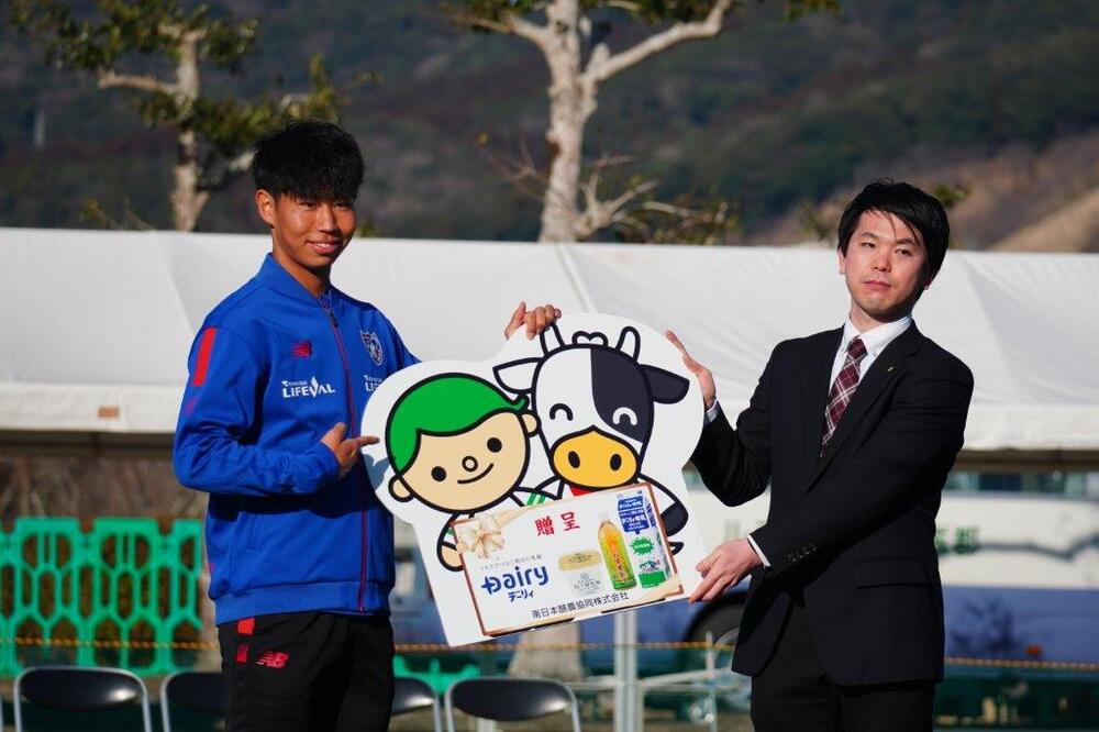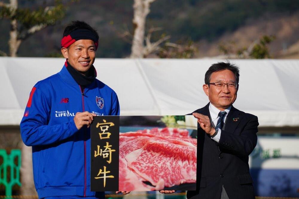 반나절에 걸쳐 도쿄에서 이동해 온 팀은 숙박 시설에서 점심을 먹은 후 그라운드로 이동했습니다. 훈련 전에 지역 주민 여러분께서 환영식을 진행해 주셨고, 다양한 지역 식재료 등을 제공해 주셨습니다.