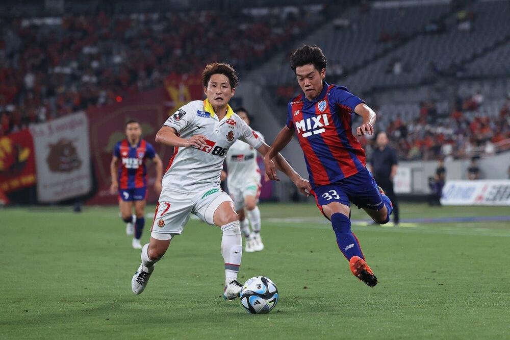 전반 막판에는 반격에 나선 나고야에게 밀리는 시간이 계속되었지만, 마이볼이 되었을 때는 쉽게 잃지 않고 볼을 유지했다. 높은 위치로 운반한 후에도 볼 쪽으로 선수들이 모여들어 연동과 연계로 국면 타개를 노렸다.