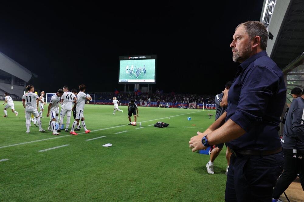 다만 시작부터 홈의 큰 환호를 받는 후쿠오카의 기세에 밀리는 시간이 계속되었다. 세컨드 볼을 빼앗기고, 라인을 제대로 올리지 못해 자진 진영에서 보내는 시간이 이어졌다. 그럼에도 불구하고, 오른쪽 윙백 시라이 코스케 선수와 왼쪽 윙백 카시프 방나간데 선수가 터치라인 가장자리에서 상대를 떼어냈을 때에는 상대 진영 깊숙이까지 공을 운반하며 크로스에서 골에 접근하는 장면을 만들어냈다.