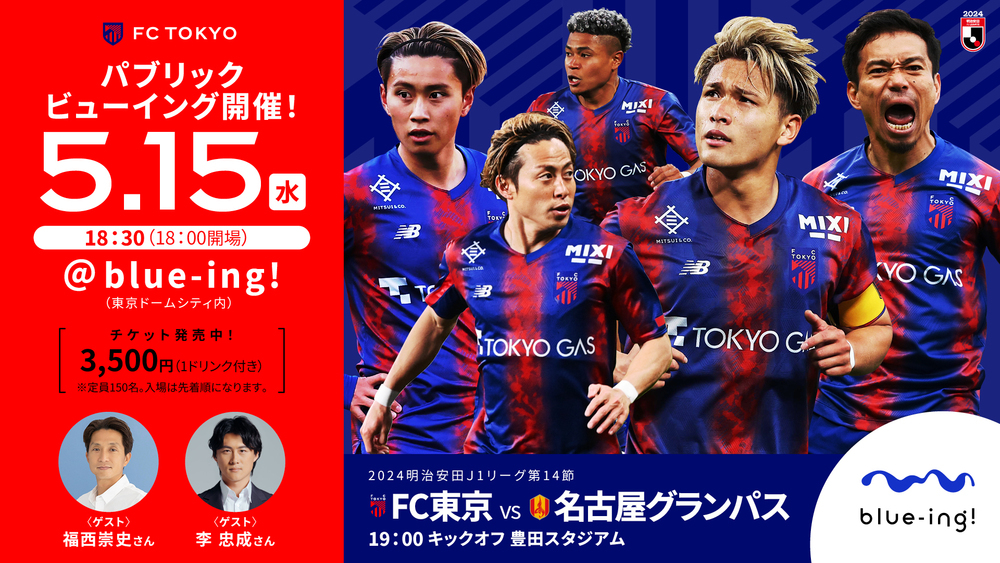 5월 15일 'J리그의 날'에 도쿄가 임하는 경기는 원정에서의 나고야 그램퍼스전입니다. 하세가와 켄타 감독이 이끄는 팀에는 나가이 켄스케, 요네모토 타쿠지, 우치다 타쿠야 각 선수가 소속되어 있으며, 청적 양쪽과도 인연이 깊은 멤버들과의 대결이 됩니다.
