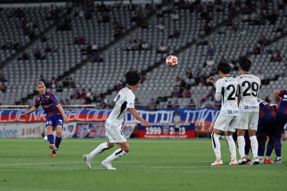 계속 공격을 이어가는 도쿄. 여기서 경기를 움직인 것은 베테랑의 한 방이었다. 전반 37분, 하라카와 선수의 오른쪽 코너킥에 파사이드에서 경합에서 이긴 선수는 모리시게 선수였다. 부드러운 궤적의 헤딩이 골키퍼의 머리를 넘어 골로 빨려 들어가며 리드를 2점 차로 벌렸다.