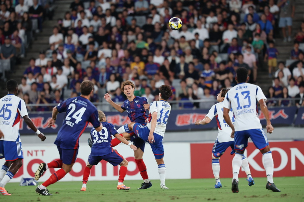 그 후에도 컴팩트한 포진을 유지한 요코하마 FM에 도쿄가 날카로운 공격을 시도하는 장면이 늘어간다. 파울로 넘어지는 경우나 코너킥 기회도 많아져, 세트플레이에서 어떻게 득점하느냐가 경기의 향방을 좌우할 것으로 보인다.