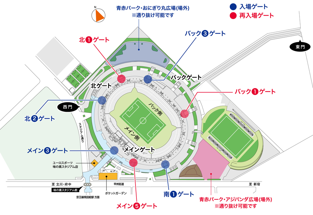 재입장 게이트:메인 5게이트, 백 1게이트, 키타카미 1게이트(위 도면 참조)