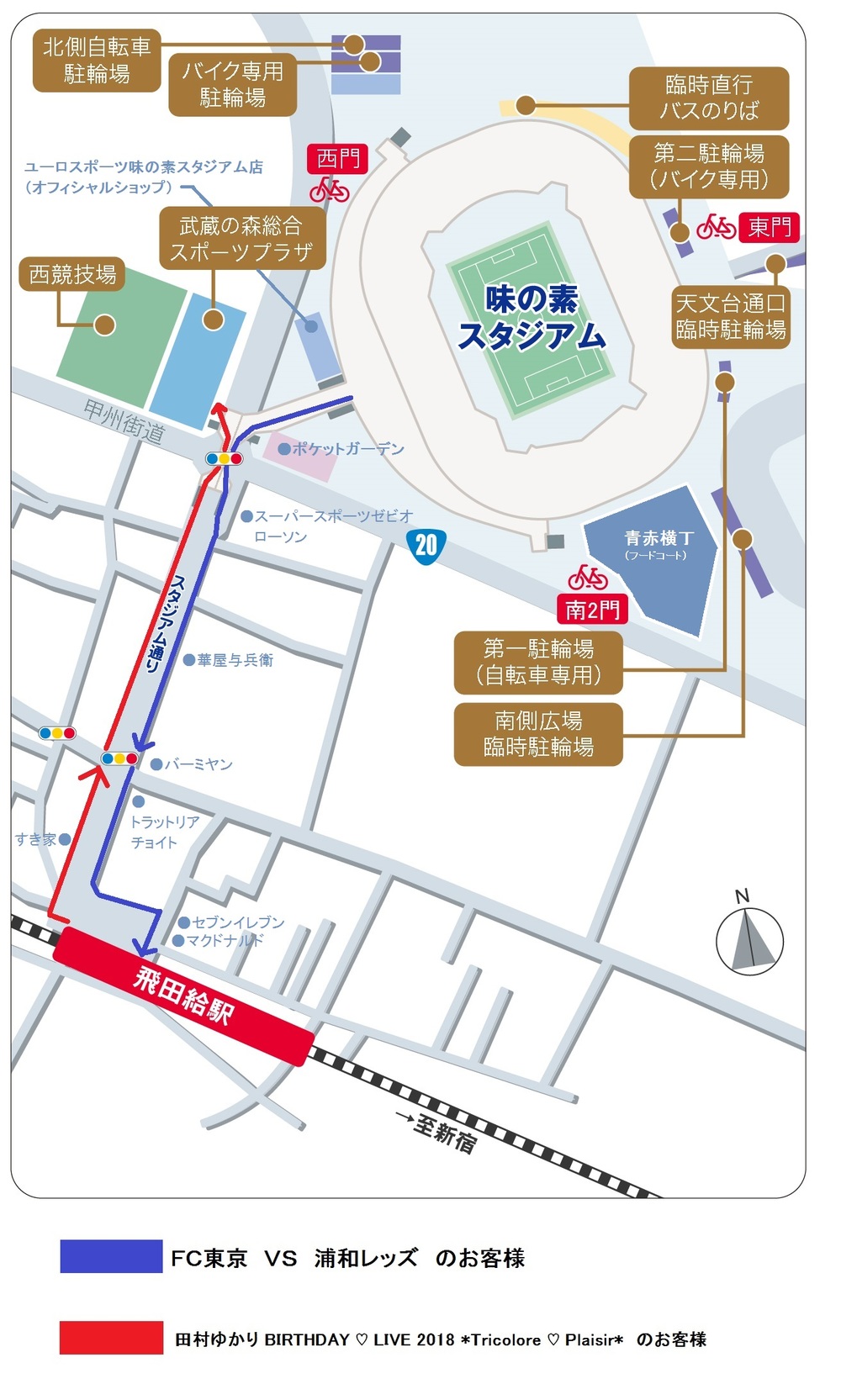경기 종료 후, 아지노모토 스타디움에서 도비타큐 역까지 구간은 양 이벤트 이용자로 혼잡이 예상됩니다.