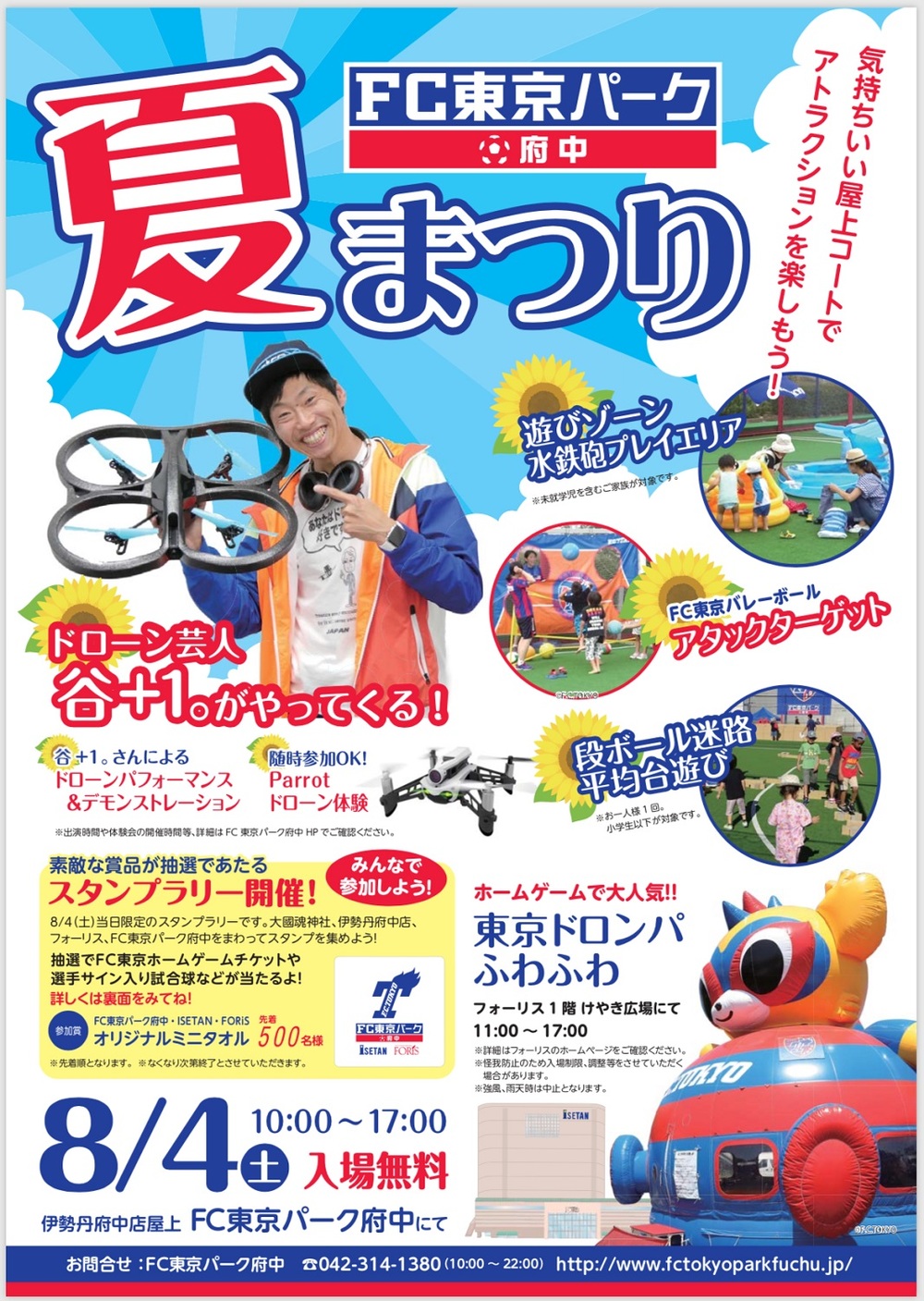 FC 도쿄가 운영·관리하는 FC 도쿄 파크 후추가 이세탄 후추점·전문점가 후추 포리스와의 공동 기획으로 『FC 도쿄 파크 후추 여름 축제』를 개최합니다. 여러분의 많은 방문을 기다리고 있습니다!