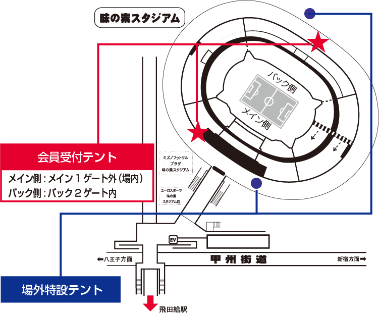 (1) 경기 당일, 스타디움 외부에 클럽 서포트 멤버 가입 접수 텐트(메인, 백)를 설치합니다.