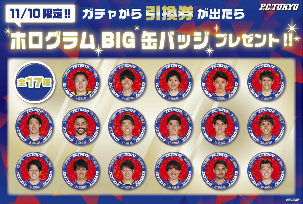 11/10(토) 2018 메이지 야스다 생명 J1리그 제32라운드 vs 주빌로 이와타(14:00 킥오프/아지노모토 스타디움)에서 F.C.TOKYO 가챠가챠 코너를 실시합니다. 꼭 들러주세요!