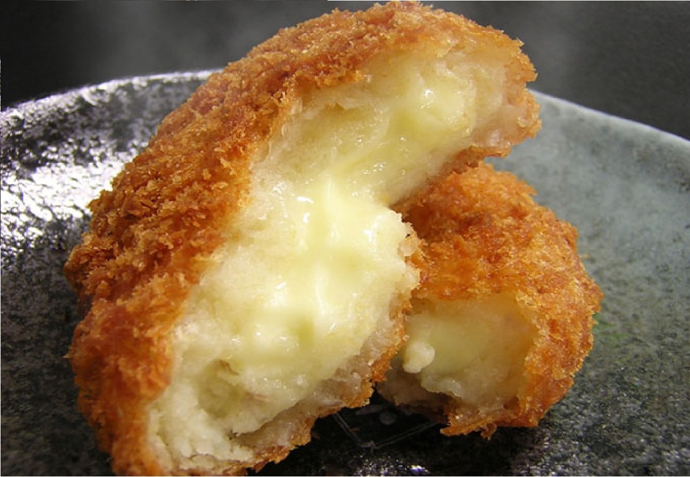 홋카이도산 남작 감자로 카망베르 치즈를 감싼, 아주 맛있는 크로켓입니다.