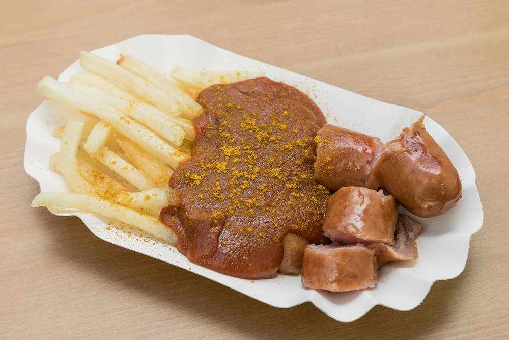 도쿄 도라노몬에서 인기 있는 커리부르스트! 소시지에 케첩 베이스의 특제 소스와 카레 풍미 파우더를 뿌려 먹는 독일인의 소울푸드입니다.