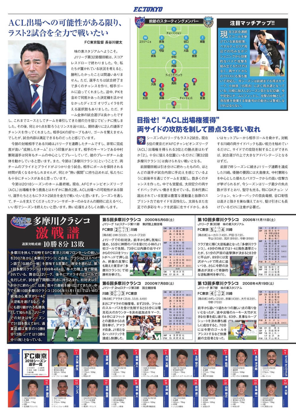 11/24(토) 2018 메이지 야스다 생명 J1 리그 제33라운드 vs 가와사키 프론탈레(14:00 킥오프/아지노모토 스타디움) 공식 매치데이 프로그램에 대해 아래와 같이 안내드립니다.