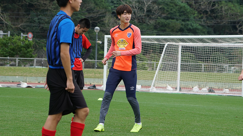 오키나와・구니가미 캠프 6일째인 오늘(1/19)은 10:00부터 구니가미촌 주최 이벤트인 축구 클리닉에 참가했습니다.