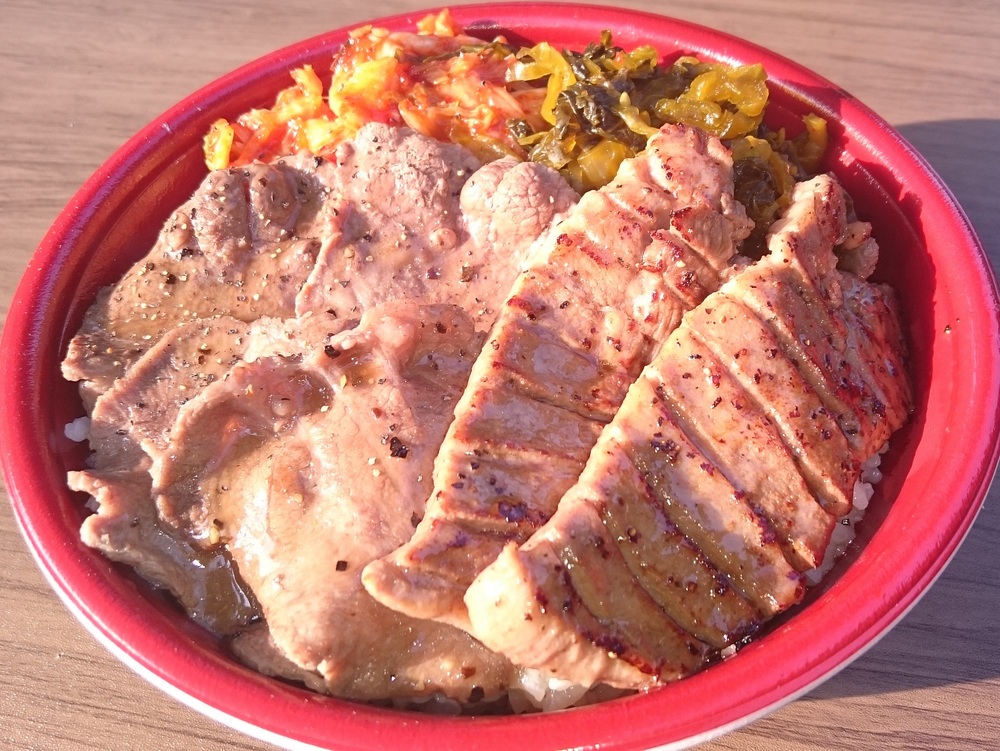 신선한 재료에 신경 쓴 점주 추천 하프&하프 덮밥. 얇게 썬 소 혀와 두껍게 썬 소 혀의 식감 차이를 한 번에 맛볼 수 있어 매우 알찬 덮밥입니다!!