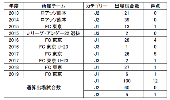 『어릴 적부터 정말 좋아했던 클럽인 도쿄에서 100경기 출전을 달성할 수 있어서 정말 기쁩니다. 앞으로 출전 수를 늘려가는 것과 동시에 클럽의 승리 수와 타이틀 수를 늘릴 수 있도록 열심히 노력하겠습니다. 앞으로도 뜨거운 응원 부탁드립니다』