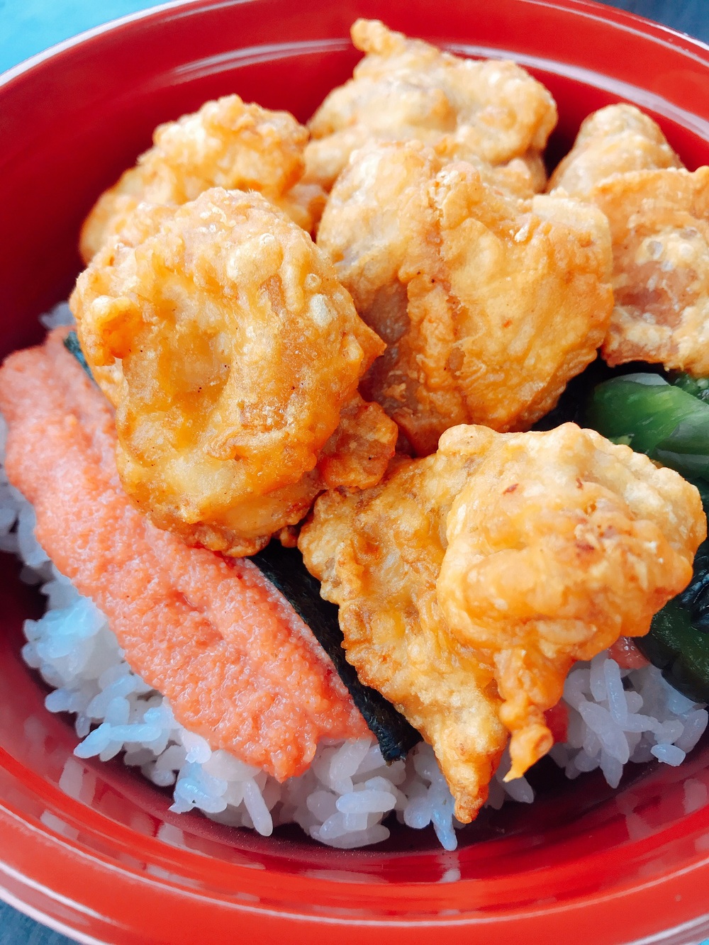밥, 명란, 김 위에 일본식 다시를 가미한 오리지널 튀김을 사용한 한 그릇을 맛보시기 바랍니다.