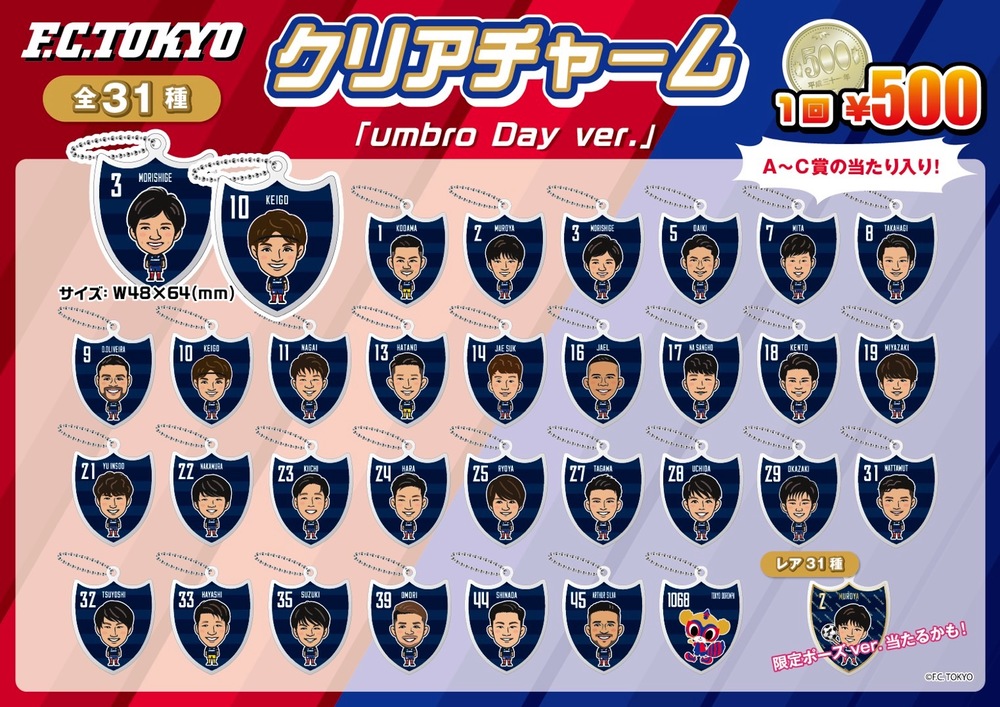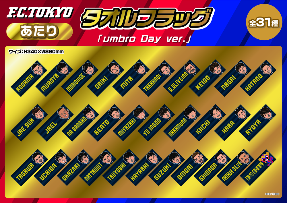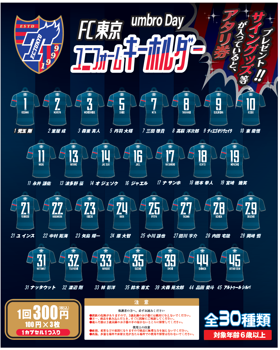 대인기 가챠가챠 코너에 당일 선수들이 착용하는 ‘umbro Day’ 한정 시합 전 연습복을 모티브로 한 키홀더와 캔 배지가 등장! 더불어 ‘당첨 가챠’가 나오면 호화 경품을 선물! 꼭 구매해 주세요!