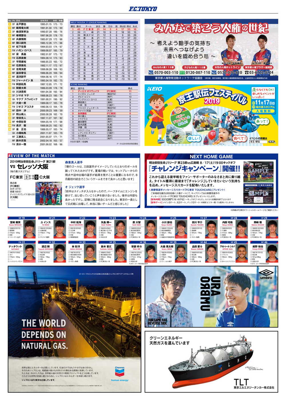 8/10(토) 2019 메이지 야스다 생명 J1리그 제22절 vs 베갈타 센다이(19:00 킥오프/아지노모토 스타디움) 공식 매치데이 프로그램에 대해 아래와 같이 안내드립니다.