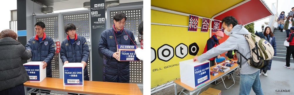 (※)FC 도쿄의 홈타운뿐만 아니라, 상대 팀의 홈타운과 경기장인 J-빌리지 스타디움이 있는 후쿠시마현에서도 막대한 피해가 발생했기 때문에, 도쿄도 외에서 개최되는 홈경기에서도 모금 활동을 실시합니다.