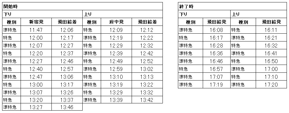 하행…신주쿠 출발 11:47~13:27 특급·준특급/총 11편
