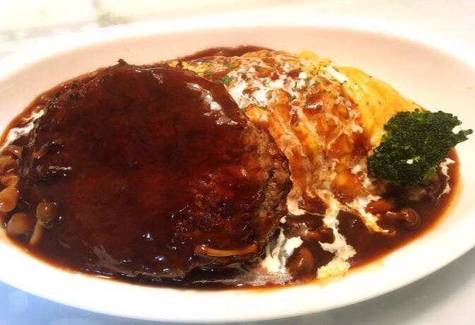 ・수제 함박 오므라이스 800엔 |