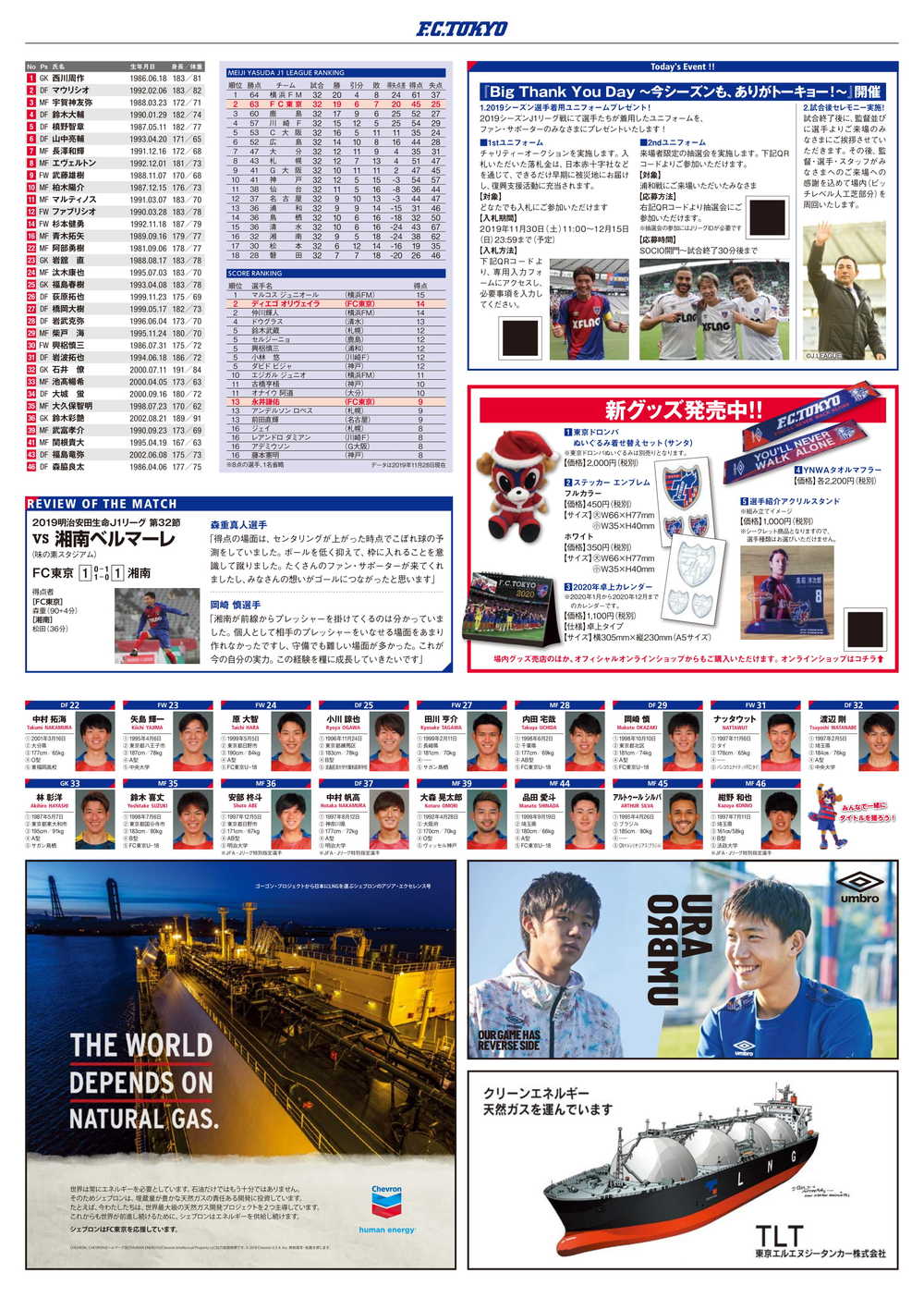 11/30(토) 2019 메이지 야스다 생명 J1리그 제33라운드 vs 우라와 레즈(14:00 킥오프/아지노모토 스타디움) 공식 매치데이 프로그램에 대해 아래와 같이 안내드립니다.