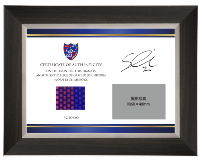 (1) 유니폼 증명서는 오센틱 유니폼의 사인이 선수 본인의 직필임을 증명함과 동시에, 2020 메이지 야스다 생명 J1 리그에서 무로야 선수가 실제 경기에서 착용한 유니폼의 일부를 잘라서 원단을 증명서에 끼워 넣고 있습니다.
