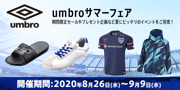 『umbro 썸머 페어』8/26(수)~9/9(수) 기간 중에 umbro 상품을 10,000엔(세금 포함) 이상 구매하신 분 중 추첨을 통해 총 50분께 선수 사인 유니폼과 umbro 상품이 당첨되는 선물 캠페인을 실시합니다!