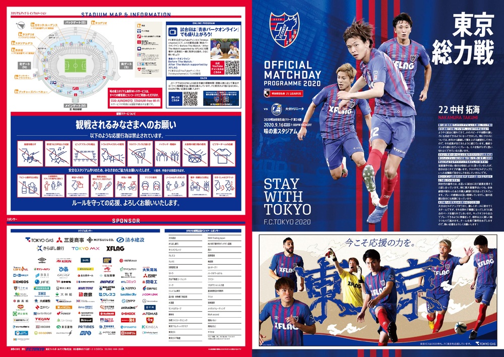 9/16(수) 2020 메이지 야스다 생명 J1리그 제24절 vs 오이타 트리니타(19:00 킥오프/아지노모토 스타디움) 공식 매치데이 프로그램에 대하여, 아래와 같이 안내드립니다.