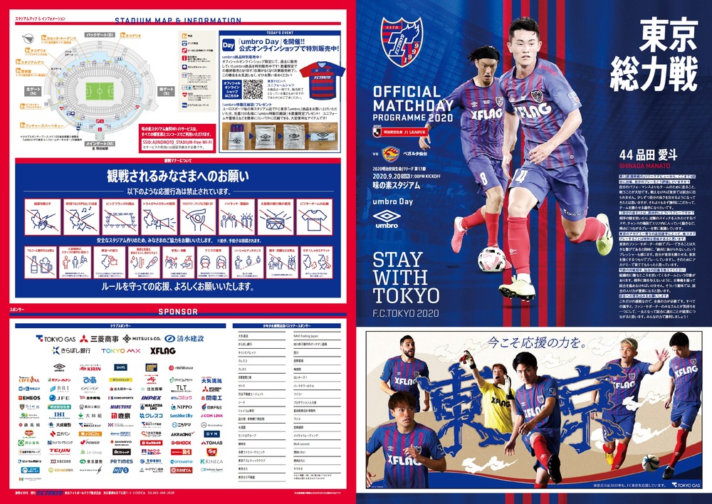 9/20(일) 2020 메이지 야스다 생명 J1리그 제17절 vs 베갈타 센다이(19:00 킥오프/아지노모토 스타디움) 공식 매치데이 프로그램에 대해 아래와 같이 안내드립니다.